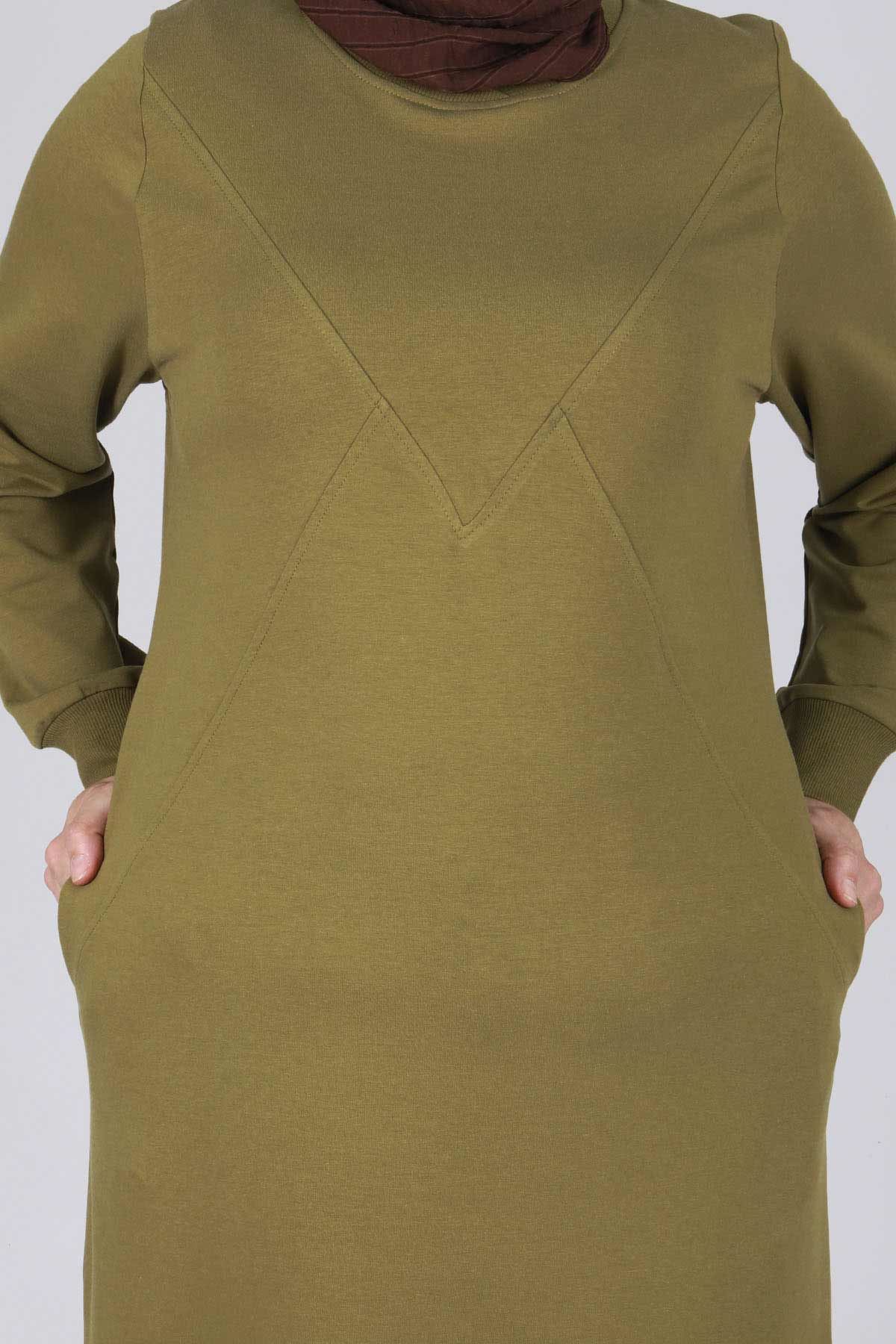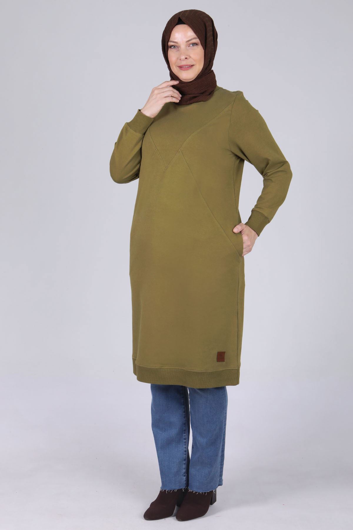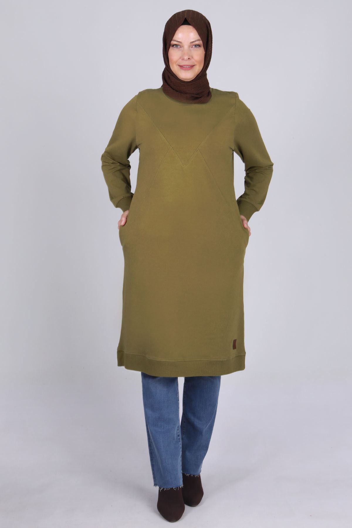 Büyük Beden Tesettür Basic İki İplik Tunik 2049 Olive