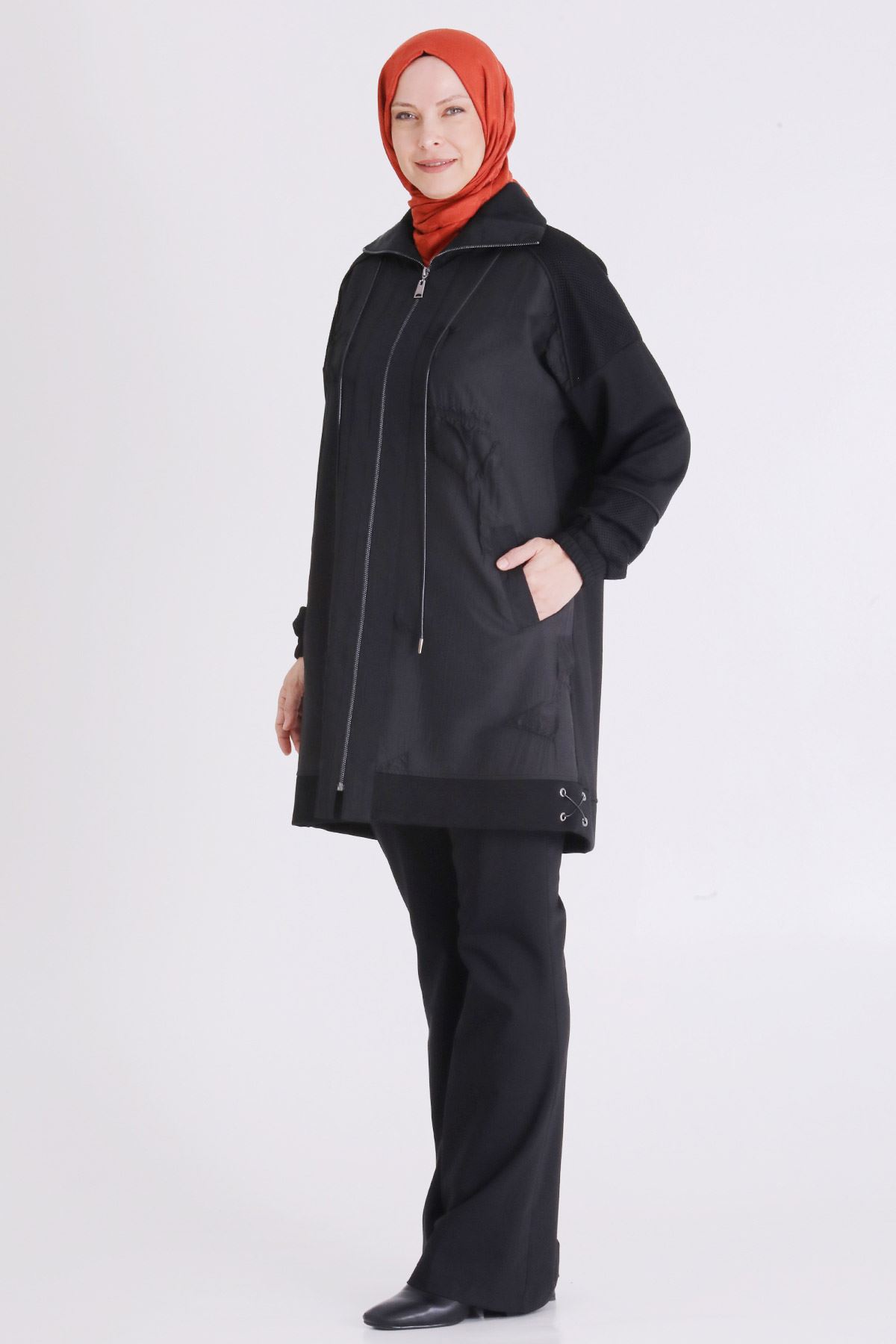 Ürün Detayları: Jakar kumaş ve file kombinli modelimiz önden fermuarlı ve ceplidir. Kol ucu lastikli ve düşük koldur.
