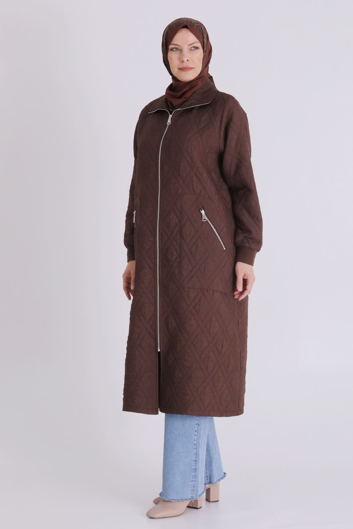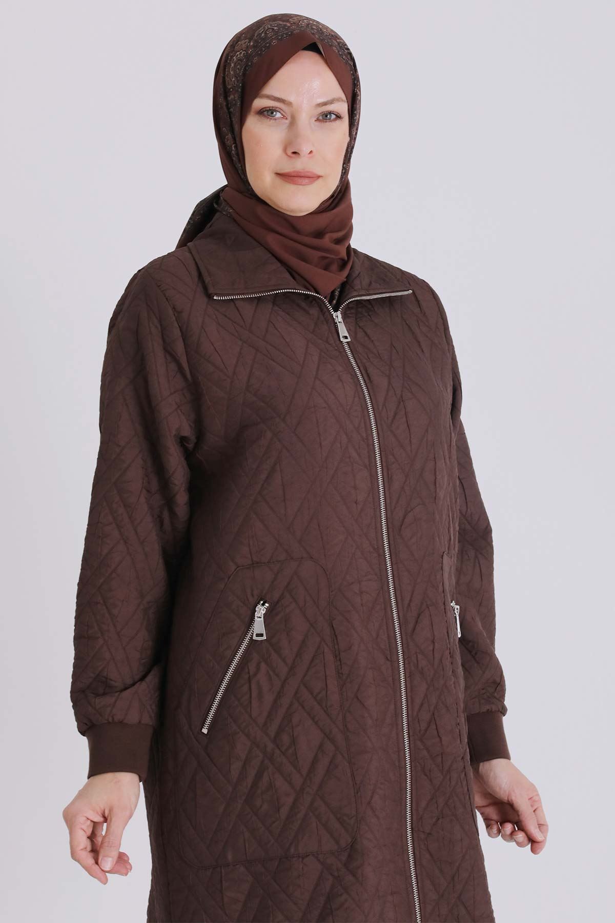 Büyük Beden Tesettür Kapitone Kap 2551 Kakao