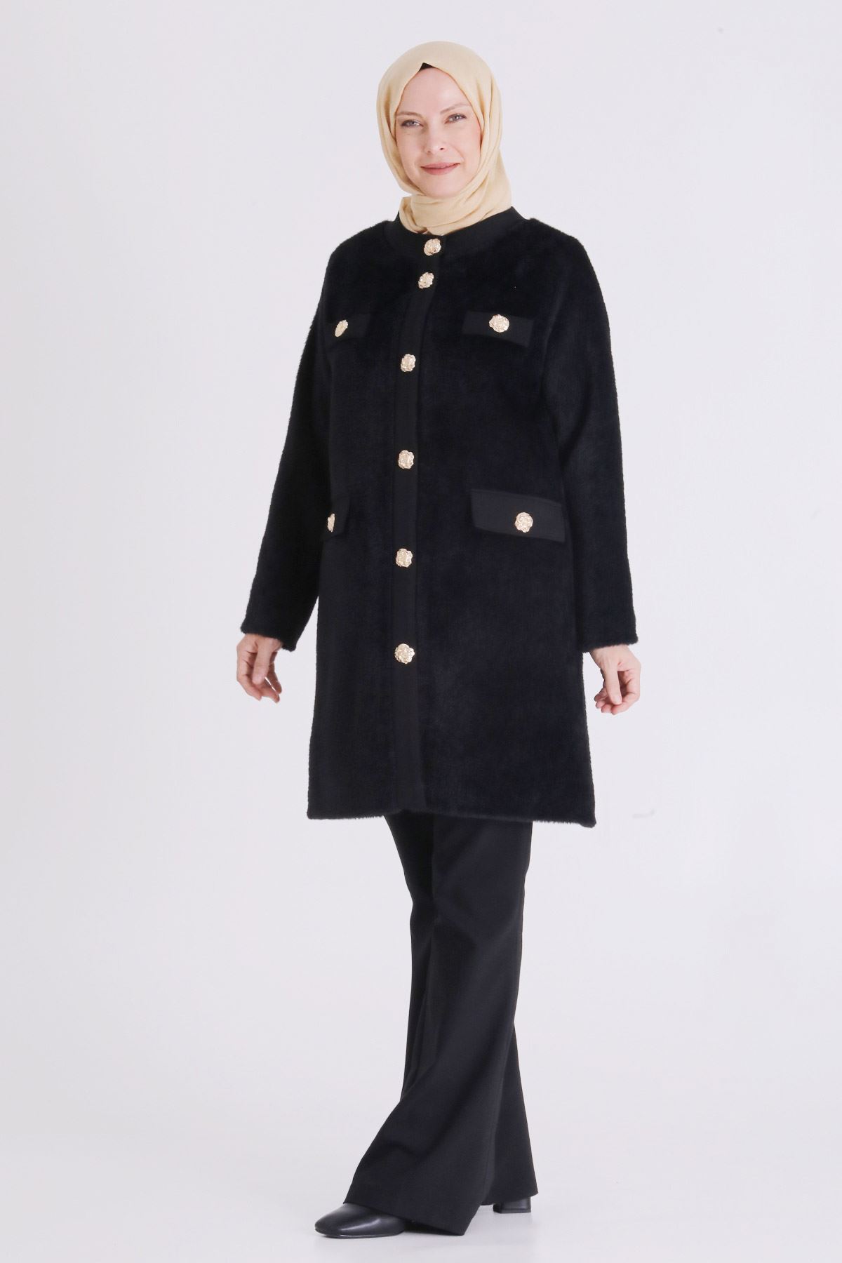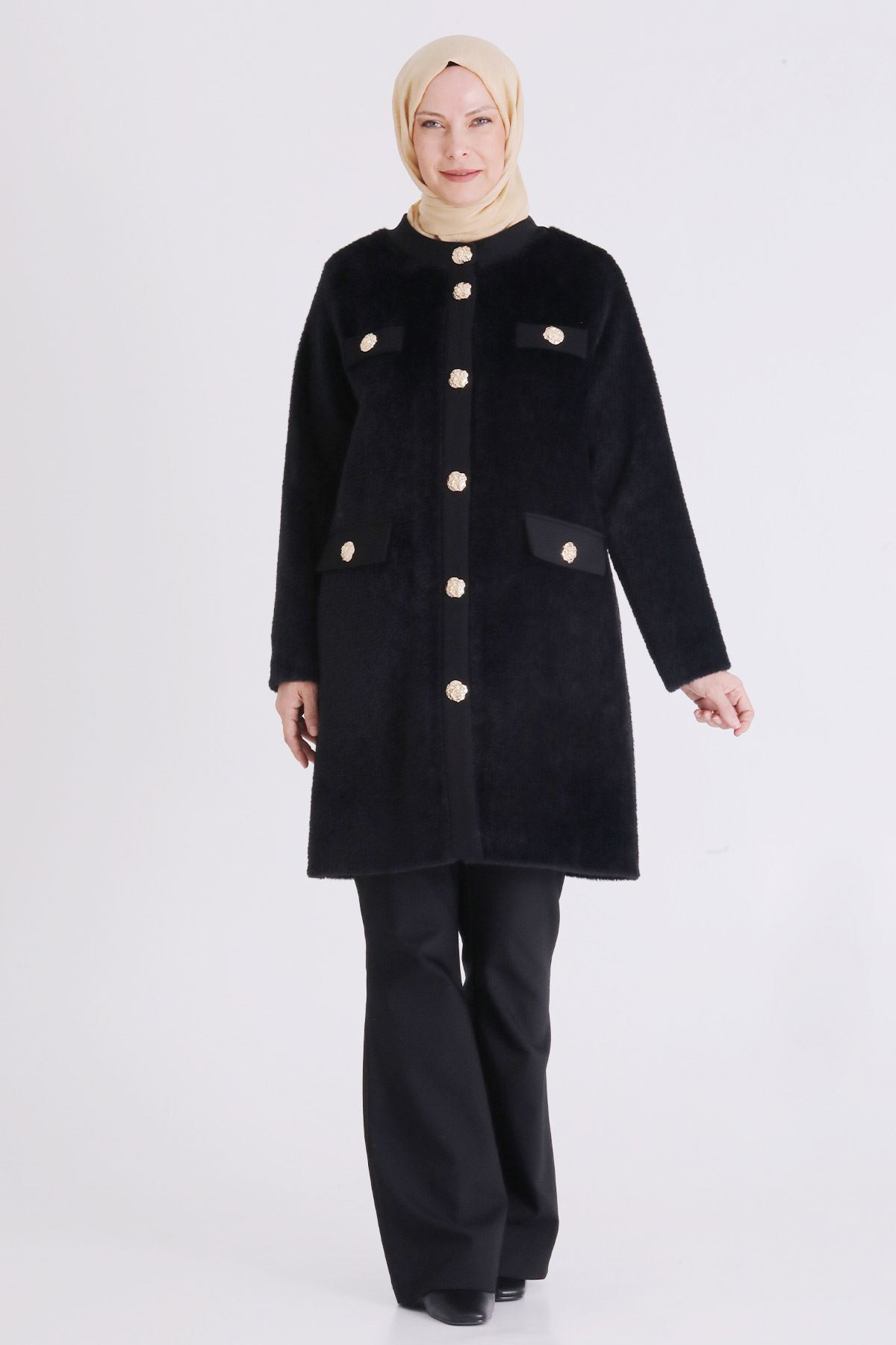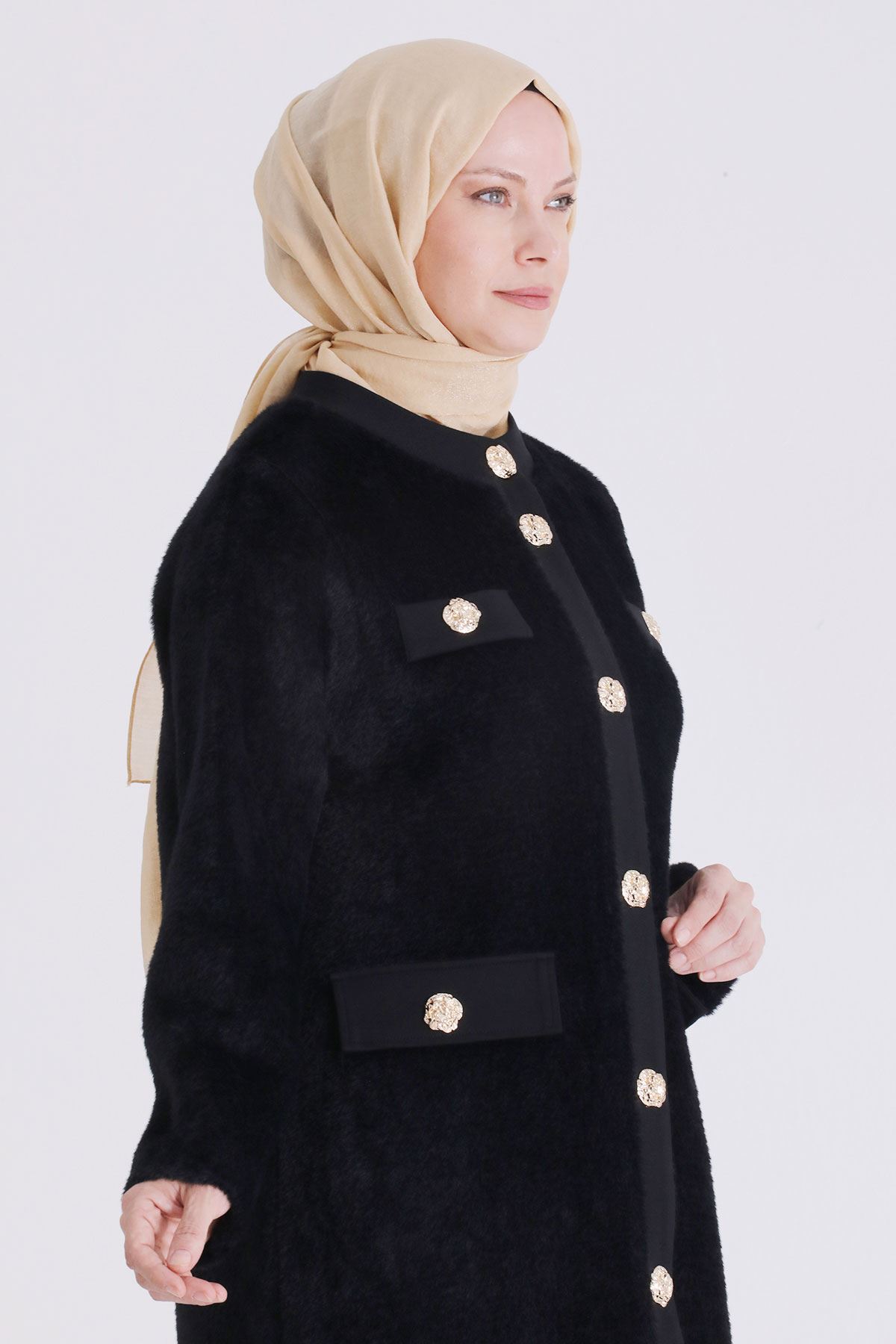 Büyük Beden Tesettür Kürk Kap 25142 Siyah