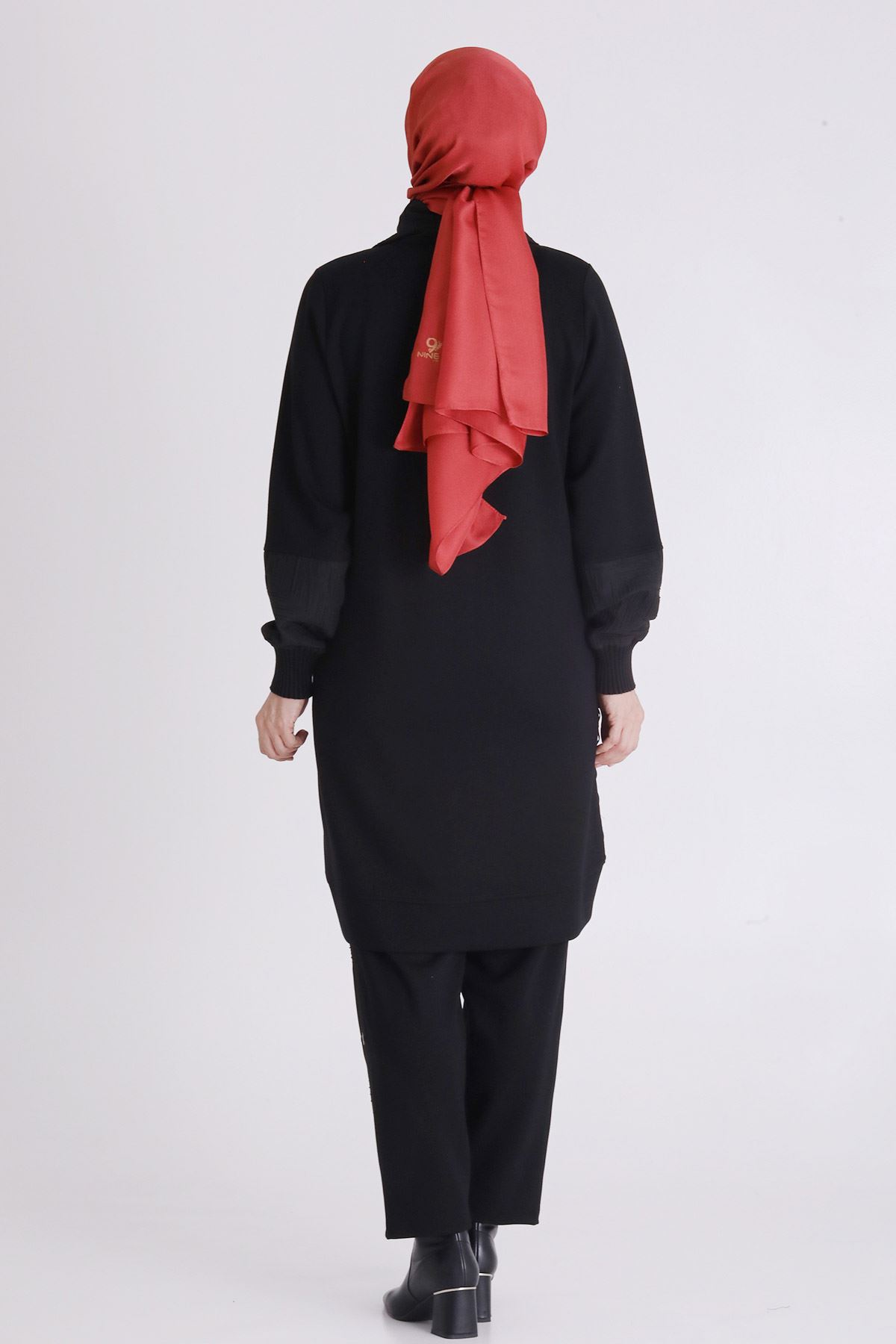 Büyük Beden Tesettür Pantolonlu Takım 35140 Siyah