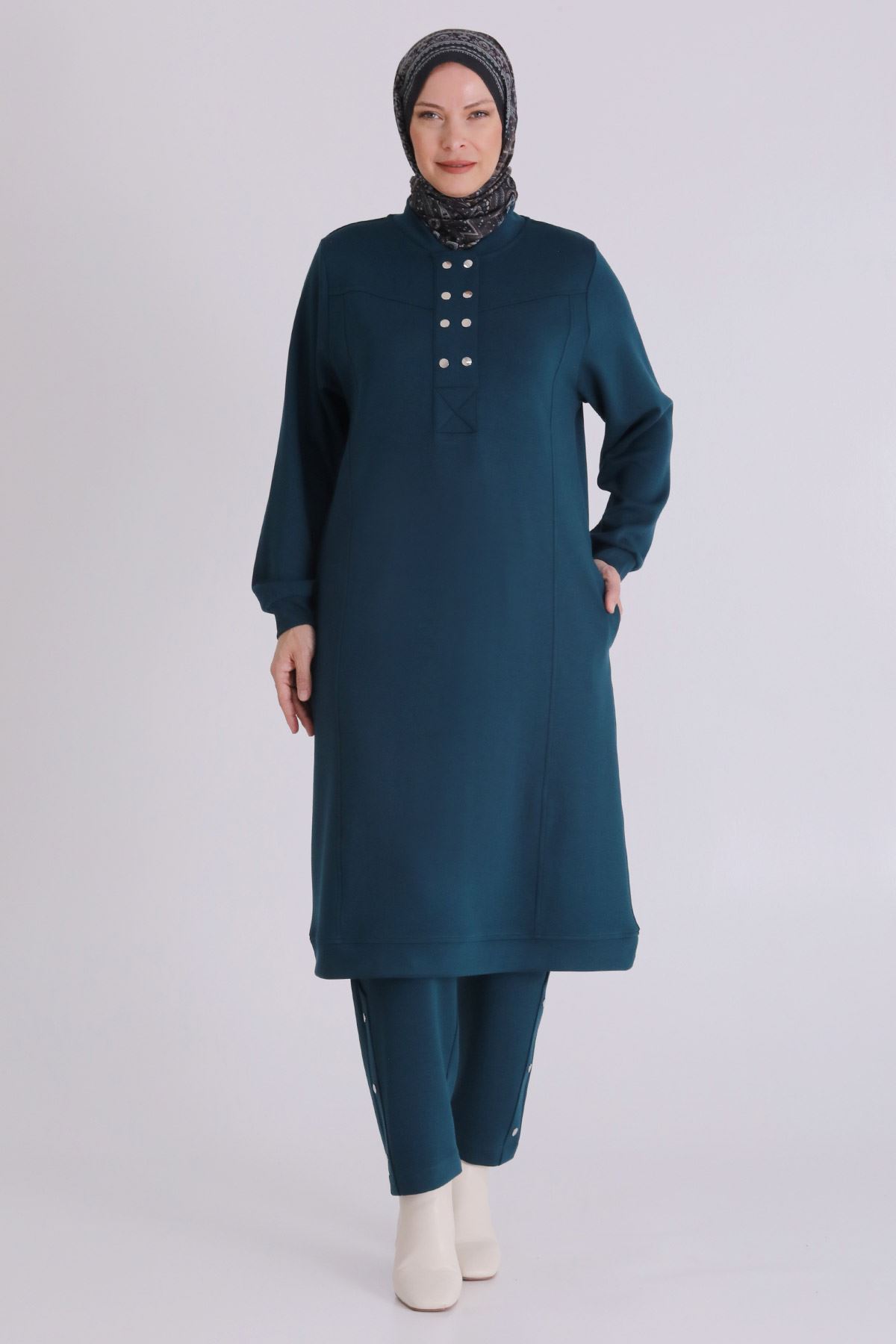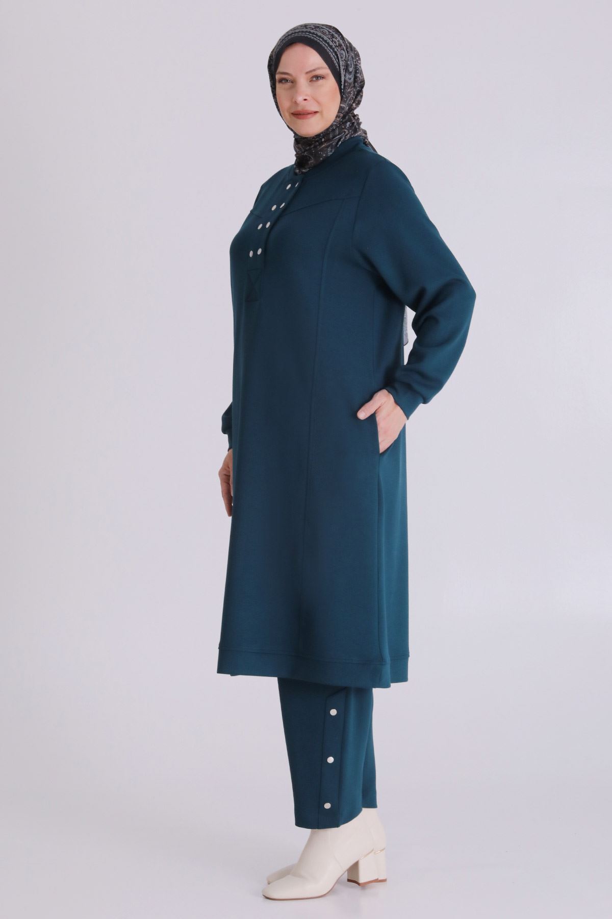Büyük Beden Tesettür Pantolonlu Takım 3554 Zümrüt