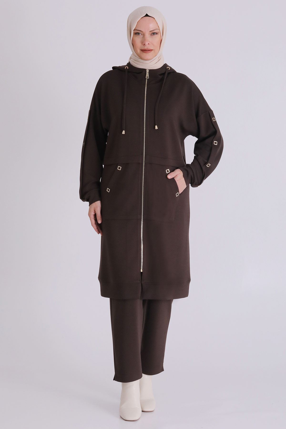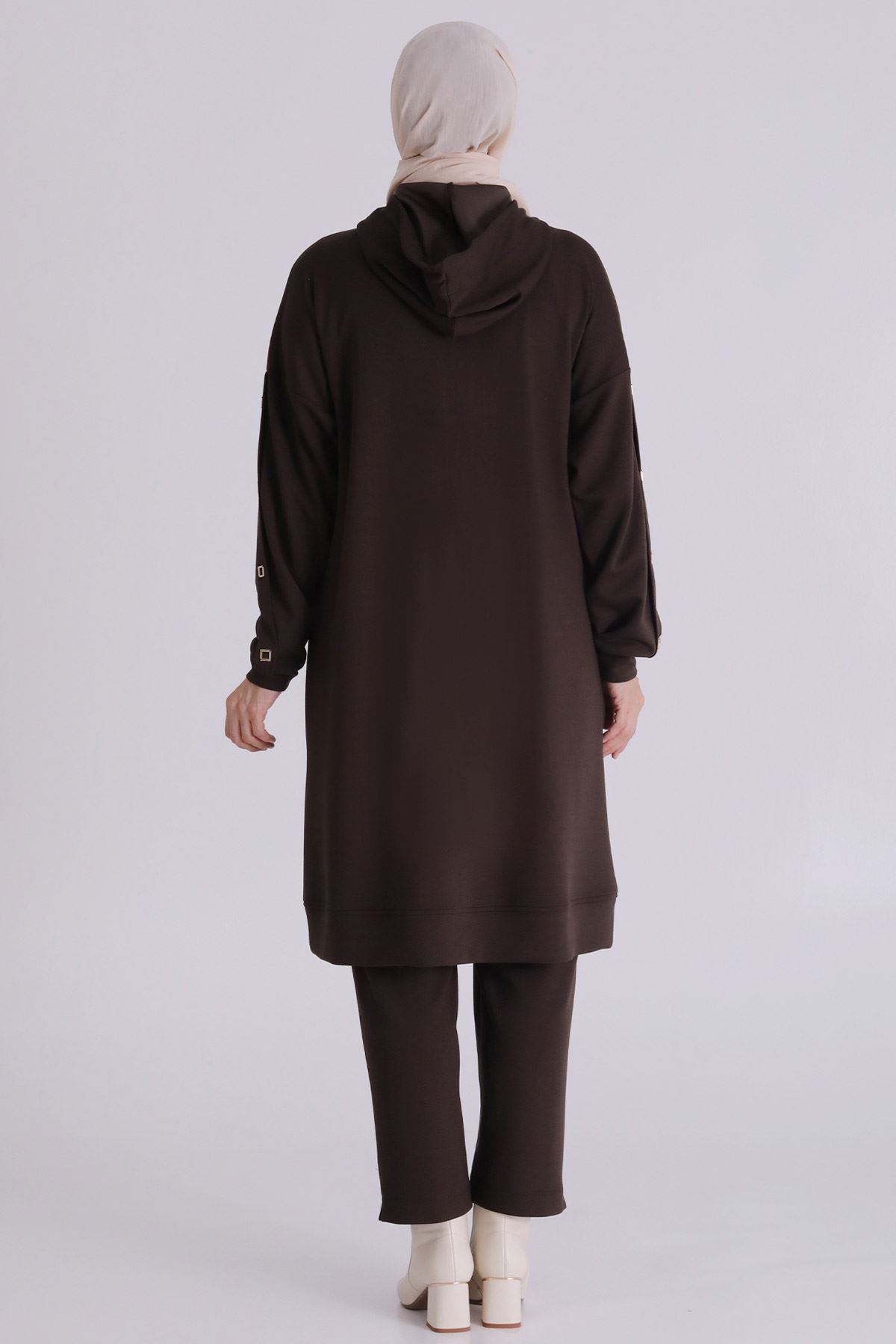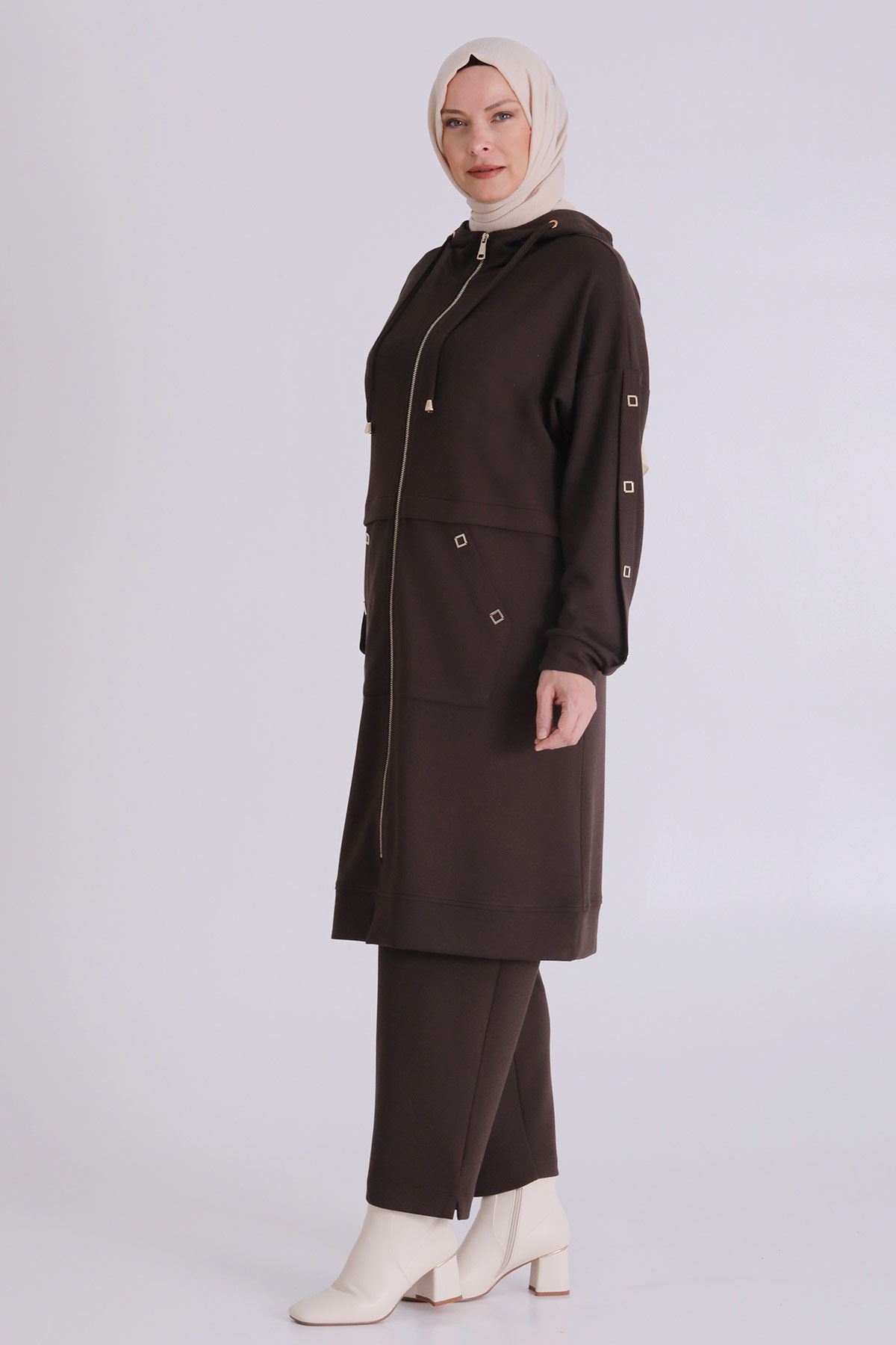Büyük Beden Tesettür Pantolonlu Takım 3555 Kahve